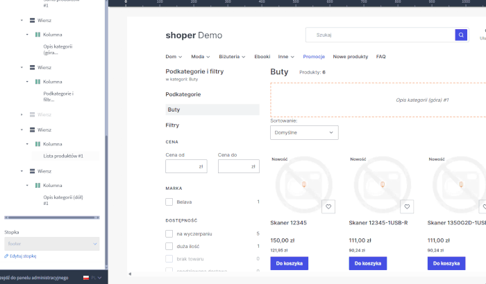 W tym przypadku, by zmienić nagłówki na poszczególnych stronach kategorii, musisz wskazany moduł przeciągnąć w miejsce modułu standardowego nagłówka na stronie kategorii: