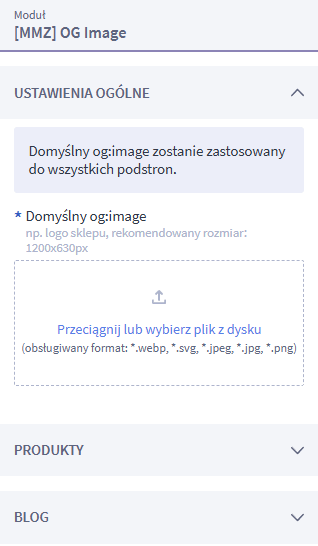 - Wgraj wybrany obraz, który będzie pełnił funkcję Open Graph Image i zostanie zastosowany po wszystkich podstron – wykonanie tego kroku jest wymagane.