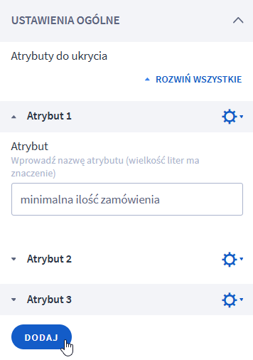 Uwaga! Wielkość liter ma znaczenie, więc bądź dokładny! W każdej chwili możesz dodać kolejne atrybuty do listy a także usunąć poprzednio ukryte.