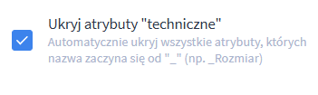 Jeśli nie chcesz wskazywać pojedynczo atrybutów do ukrycia możesz skorzystać z opcji Ukryj atrybuty „techniczne”